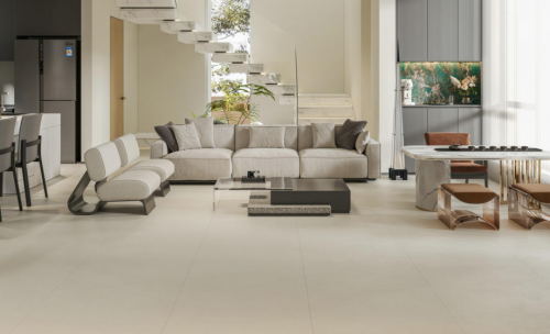??簡一瓷磚產品線覆蓋廣泛,風格多元,從極簡到復古均有涉獵。其客廳用磚在規格選擇上靈活多樣,能夠滿足不同戶型的空間布局需求。